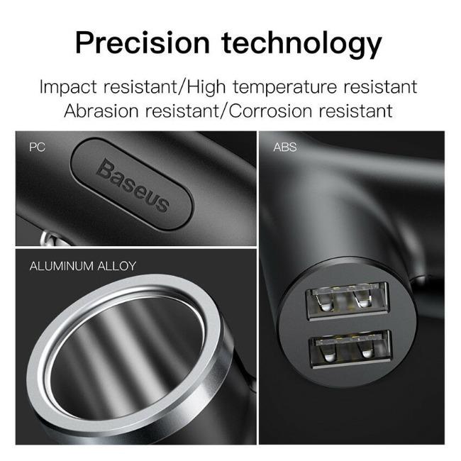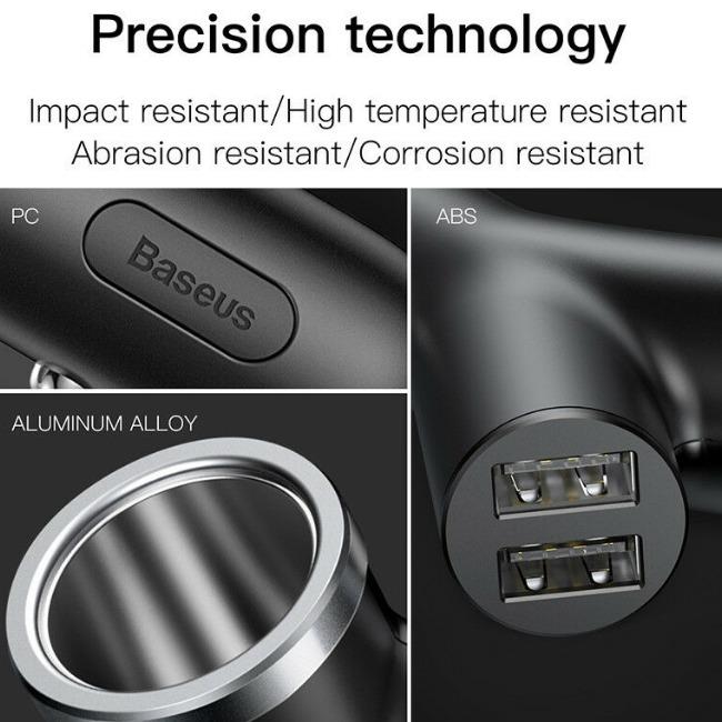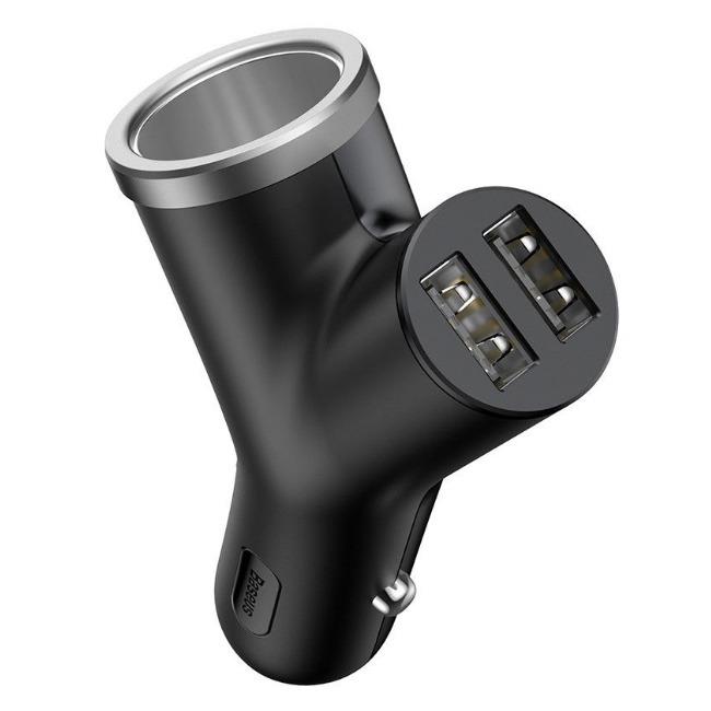 Baseus Y type dual USB+cigarette lighter extended car charger