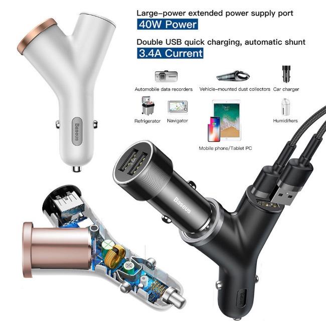 Baseus Y type dual USB car charger