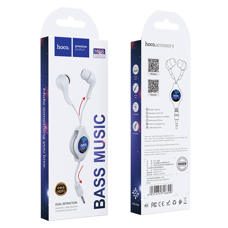 هندزفری جمع شونده خودکار هوکو Hoco M68 Easy Clip earphones